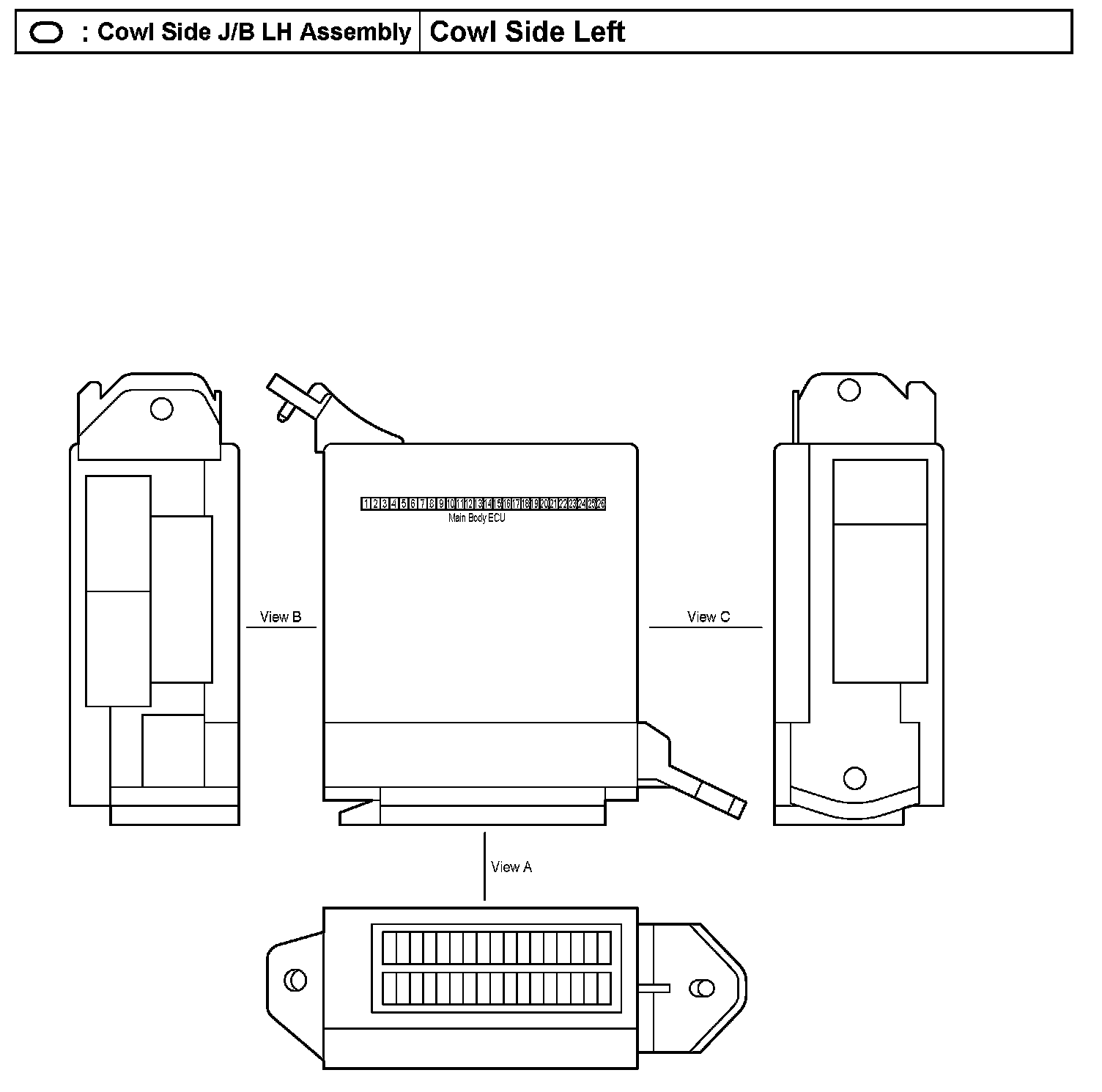 Cowl Side J/B LH Assembly - Cowl Side Left: