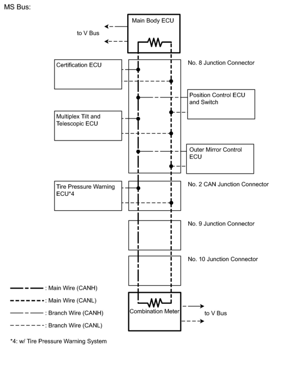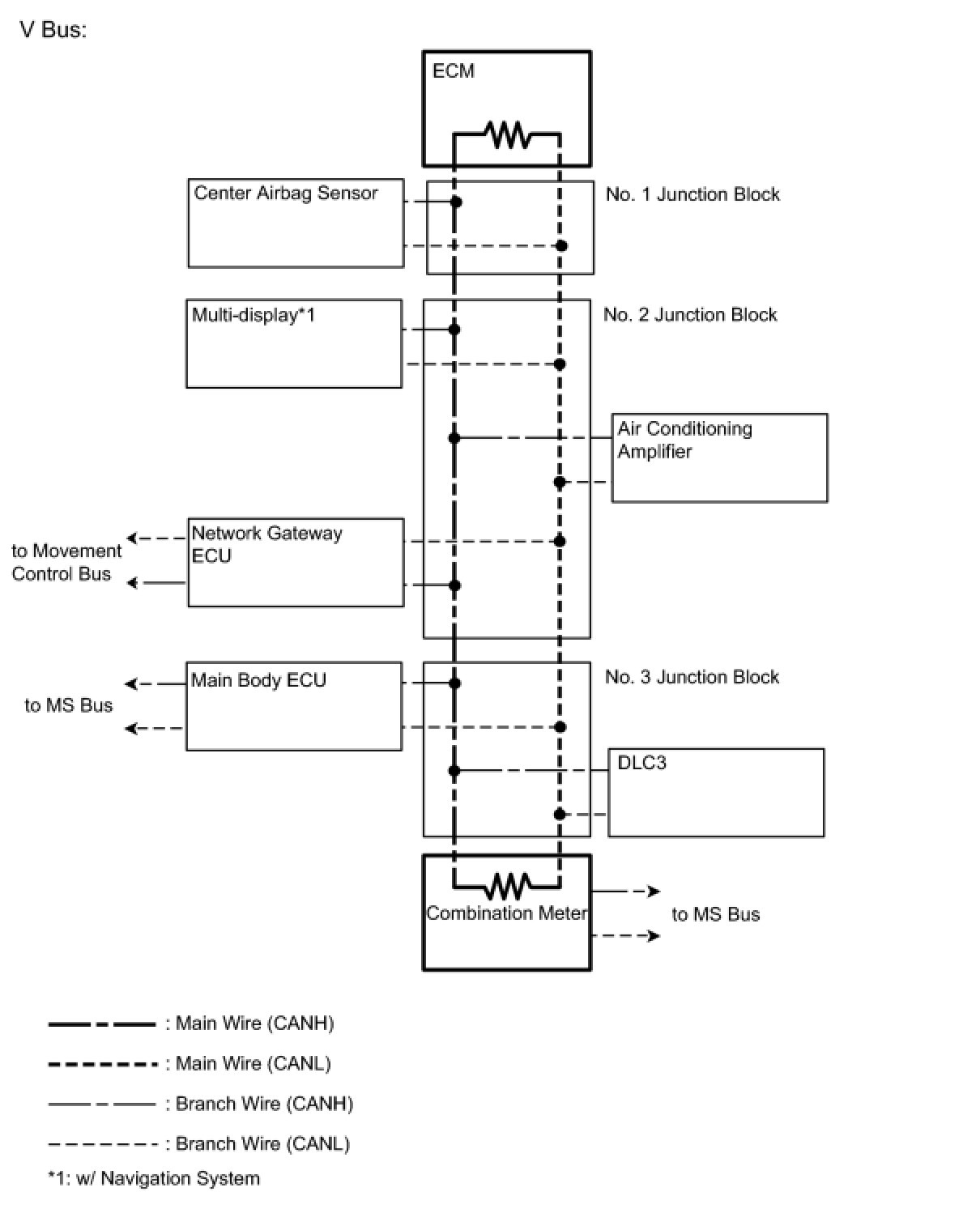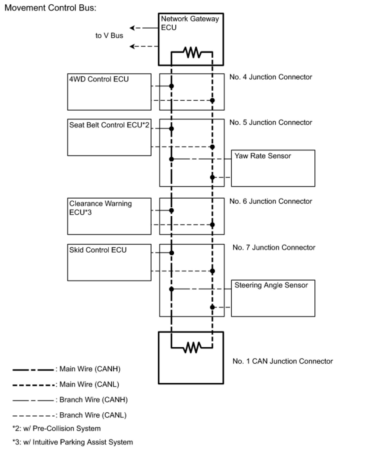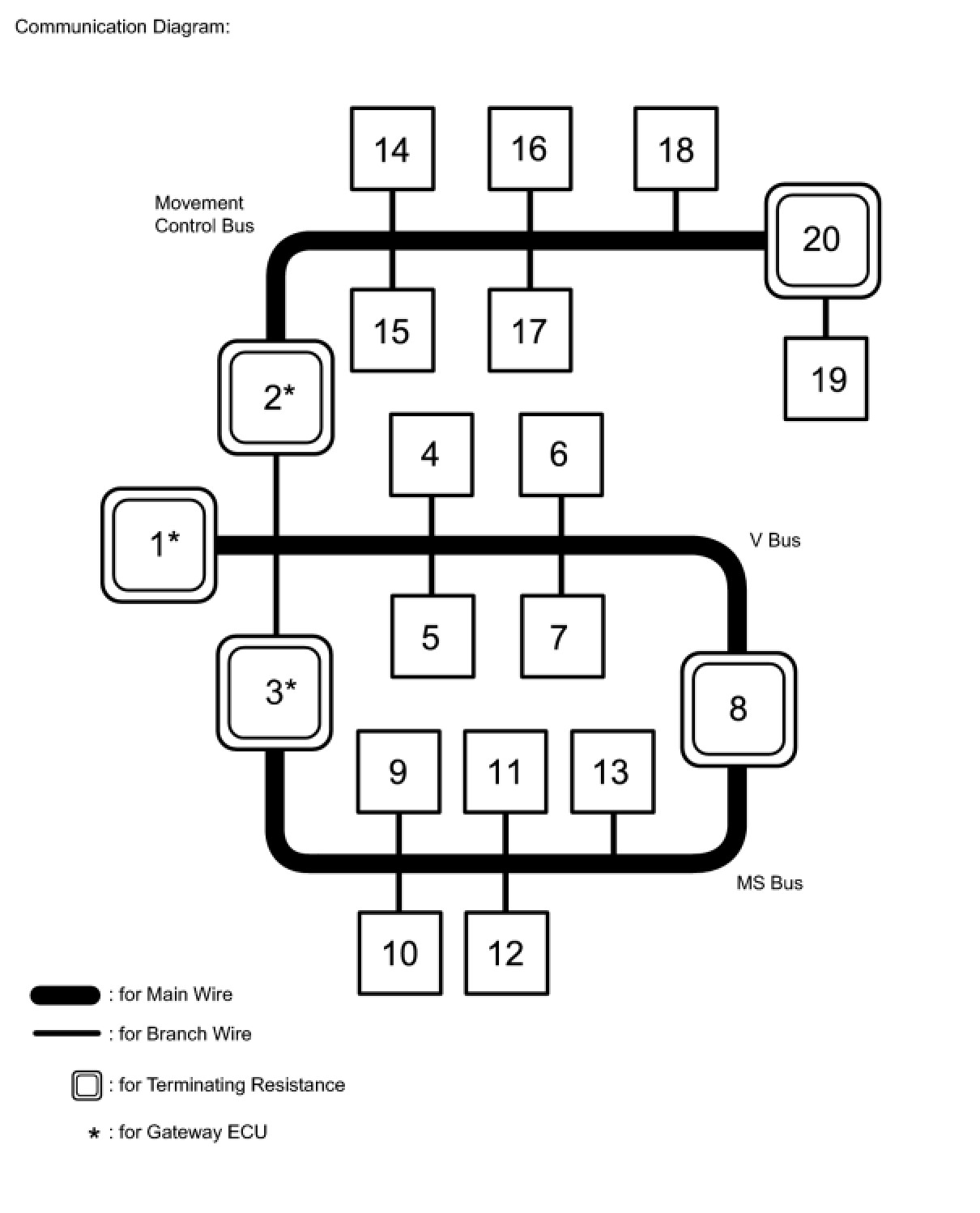 (1) The main wire is a wire harness between the 2 termination circuits on the bus (communication line). This is the main bus in the CAN communication system.