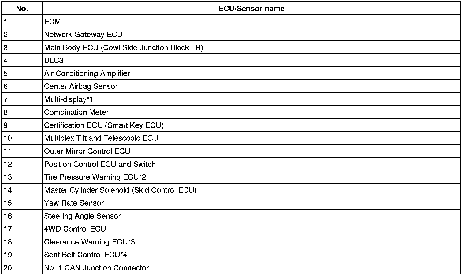 4. ECU OR SENSOR WHICH COMMUNICATE VIA CAN COMMUNICATION SYSTEM