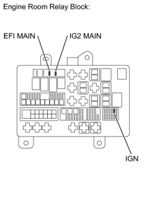 (a) Remove the IG2 MAIN fuse, EFI MAIN fuse and IGN fuse from the engine room relay block.