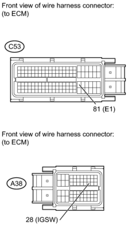 (a) Disconnect the A38 and C53 ECM connectors.