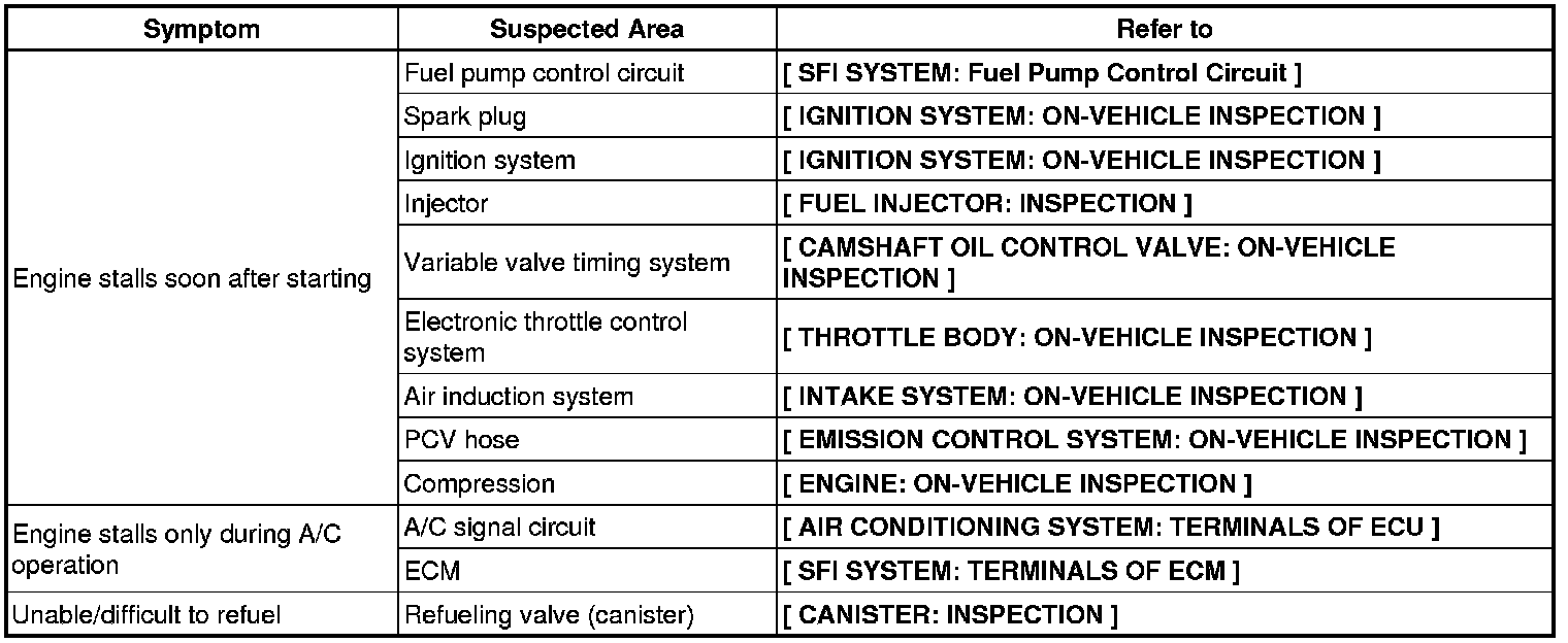 3UR-FE ENGINE CONTROL: SFI SYSTEM: PROBLEM SYMPTOMS TABLE