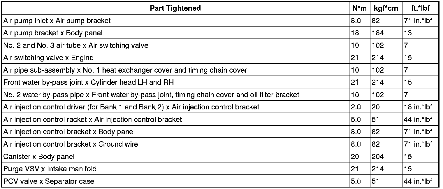 SPECIFICATIONS: 3UR-FE EMISSION CONTROL: TORQUE SPECIFICATIONS