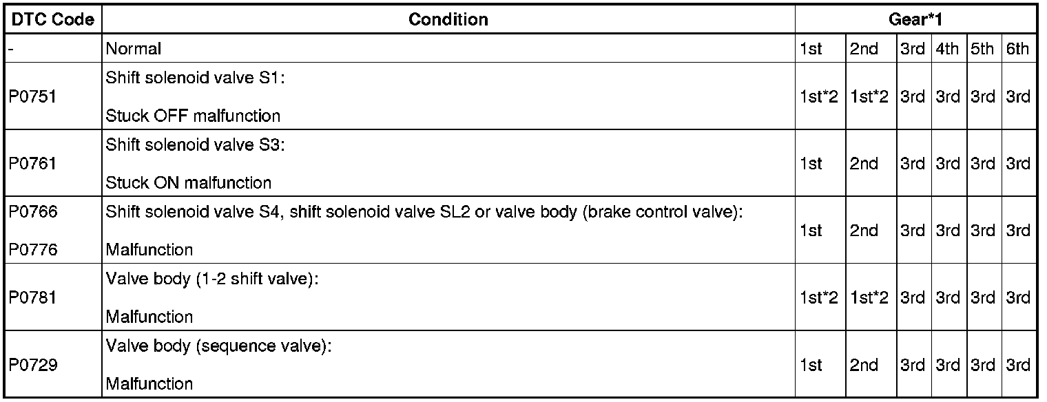 - *1: Actual gear shift (gear position) under fail-safe operation.