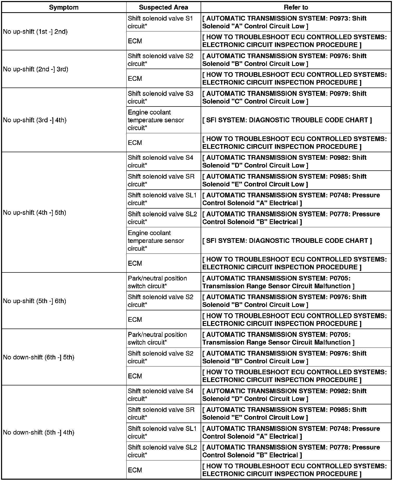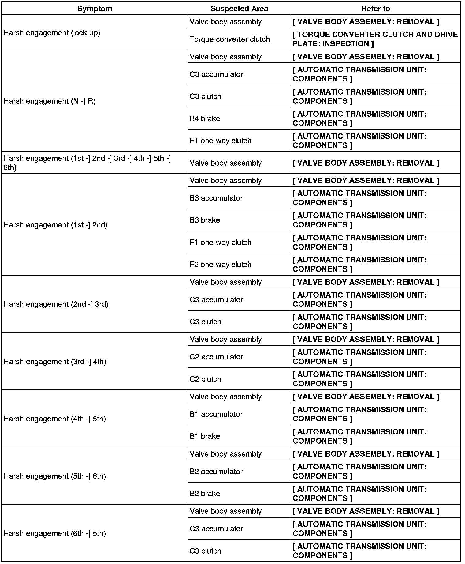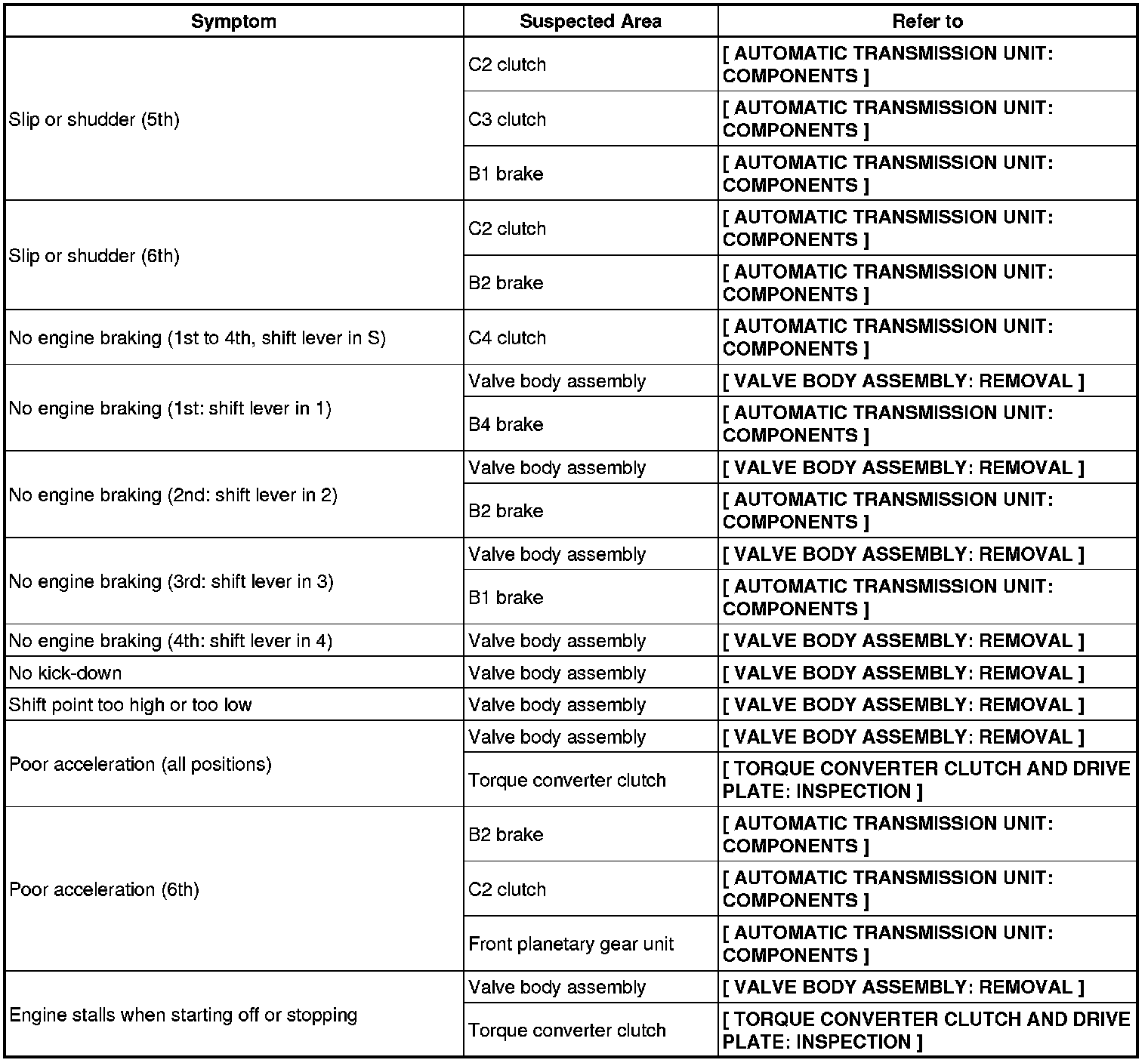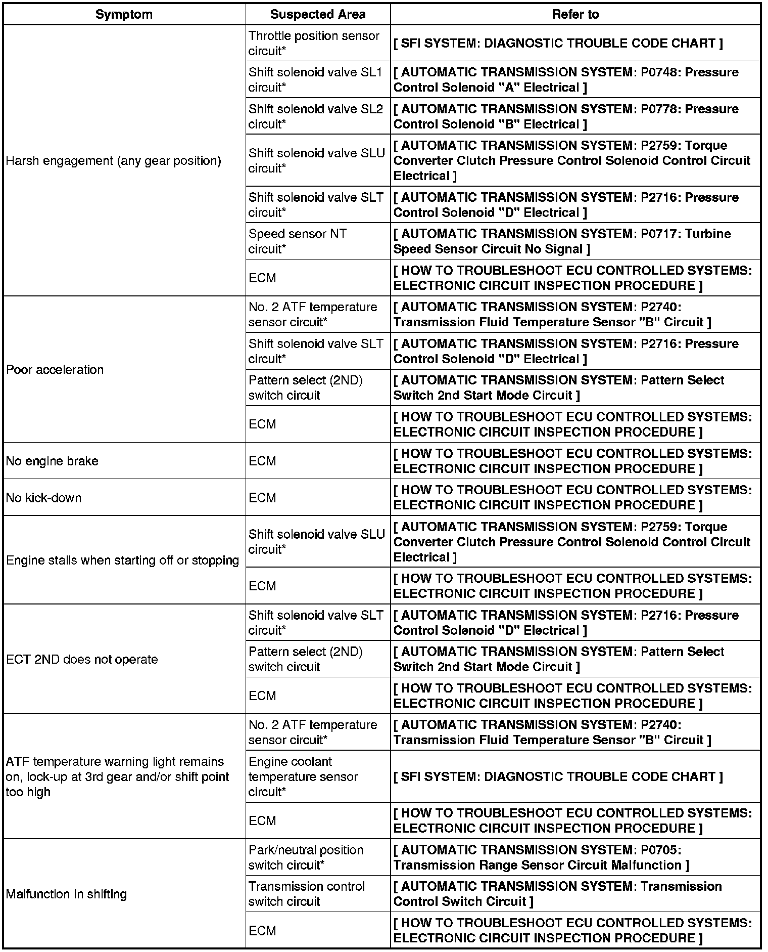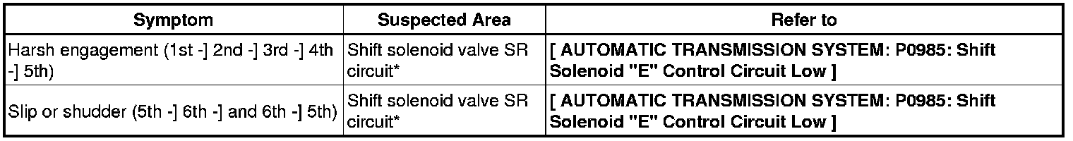 AB60F AUTOMATIC TRANSMISSION / TRANSAXLE: AUTOMATIC TRANSMISSION SYSTEM: PROBLEM SYMPTOMS TABLE