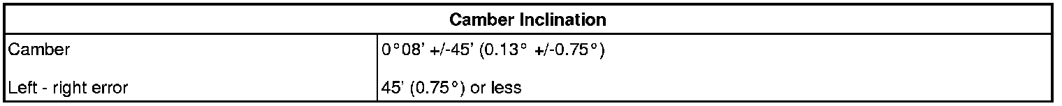 Standard Camber Inclination (Unloaded Vehicle)
