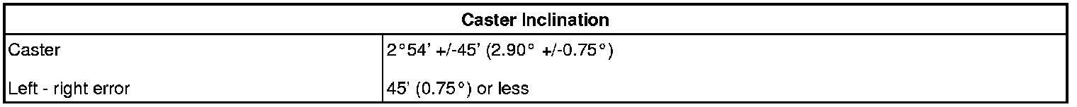 Standard Caster Inclination (Unloaded Vehicle)