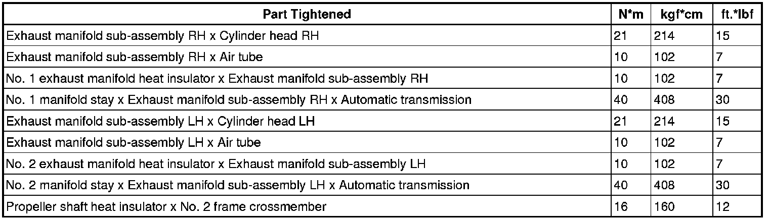 SPECIFICATIONS: 3UR-FE INTAKE / EXHAUST: TORQUE SPECIFICATIONS
