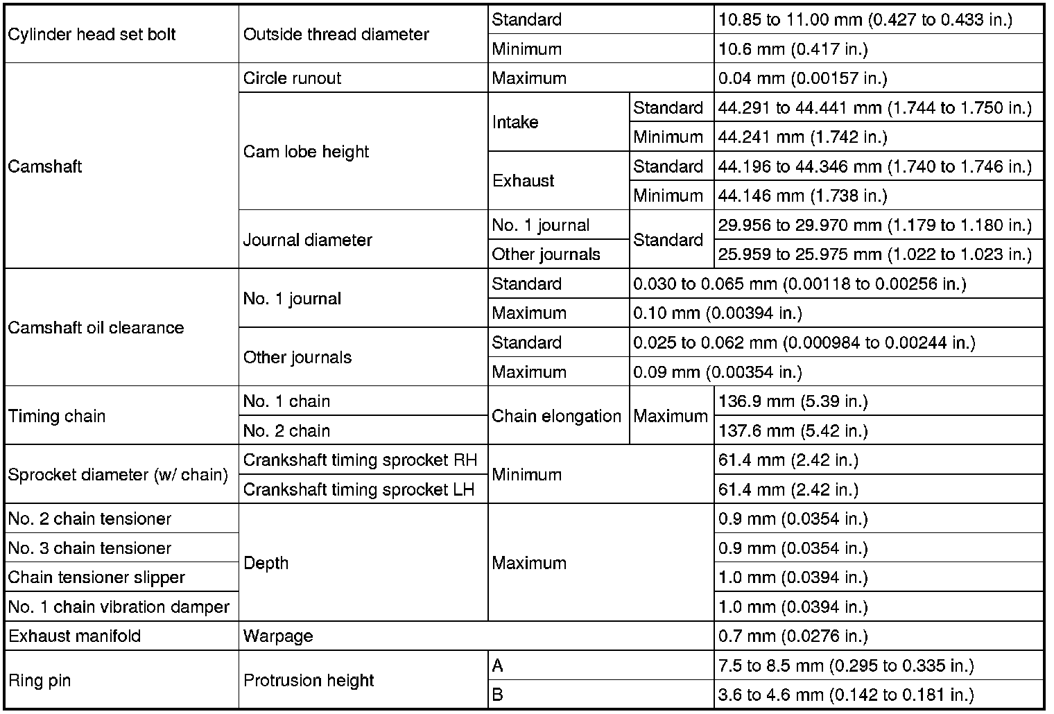 SPECIFICATIONS: 3UR-FE ENGINE MECHANICAL: SERVICE DATA