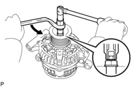 (d) To loosen the pulley nut, turn SST 1-A in the direction shown in the illustration.