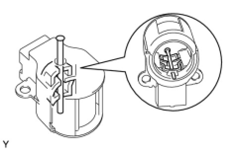 (a) While pushing the 2 brushes toward the inside of the brush holder, insert a pin (diameter: 1.0 mm (0.0394 in.)) into the brush holder hole.
