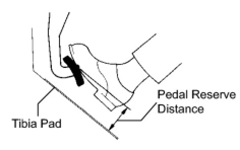 Standard Pedal Reserve Distance from Tibia Pad at 490 N (50 kgf, 110.2 lbf):
