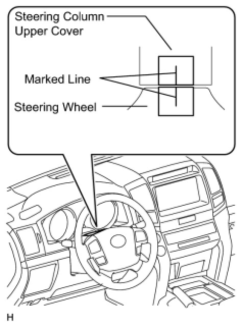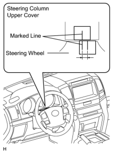 1. Apply masking tape to the top center of the steering wheel and steering column upper cover.