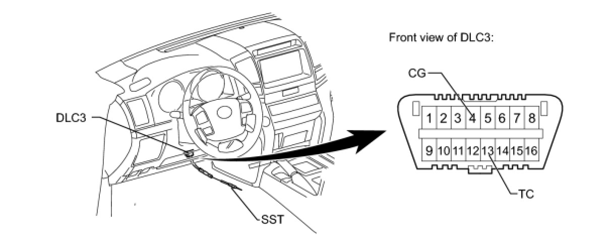 1. Using SST, connect terminals 13 (TC) and 4 (CG) of the DLC3.