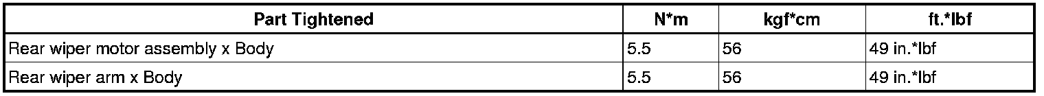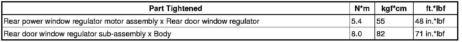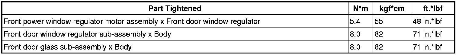 SPECIFICATIONS: WINDOW / GLASS: TORQUE SPECIFICATIONS
