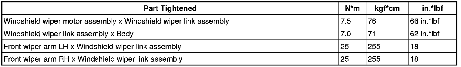 SPECIFICATIONS: WIPER / WASHER: TORQUE SPECIFICATIONS