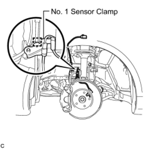(c) Temporarily install the No. 1 sensor clamp to the shock absorber.