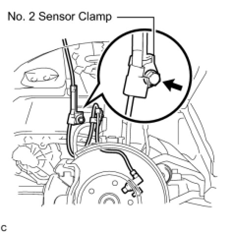 (e) Install the No. 2 sensor clamp to the body with the bolt.