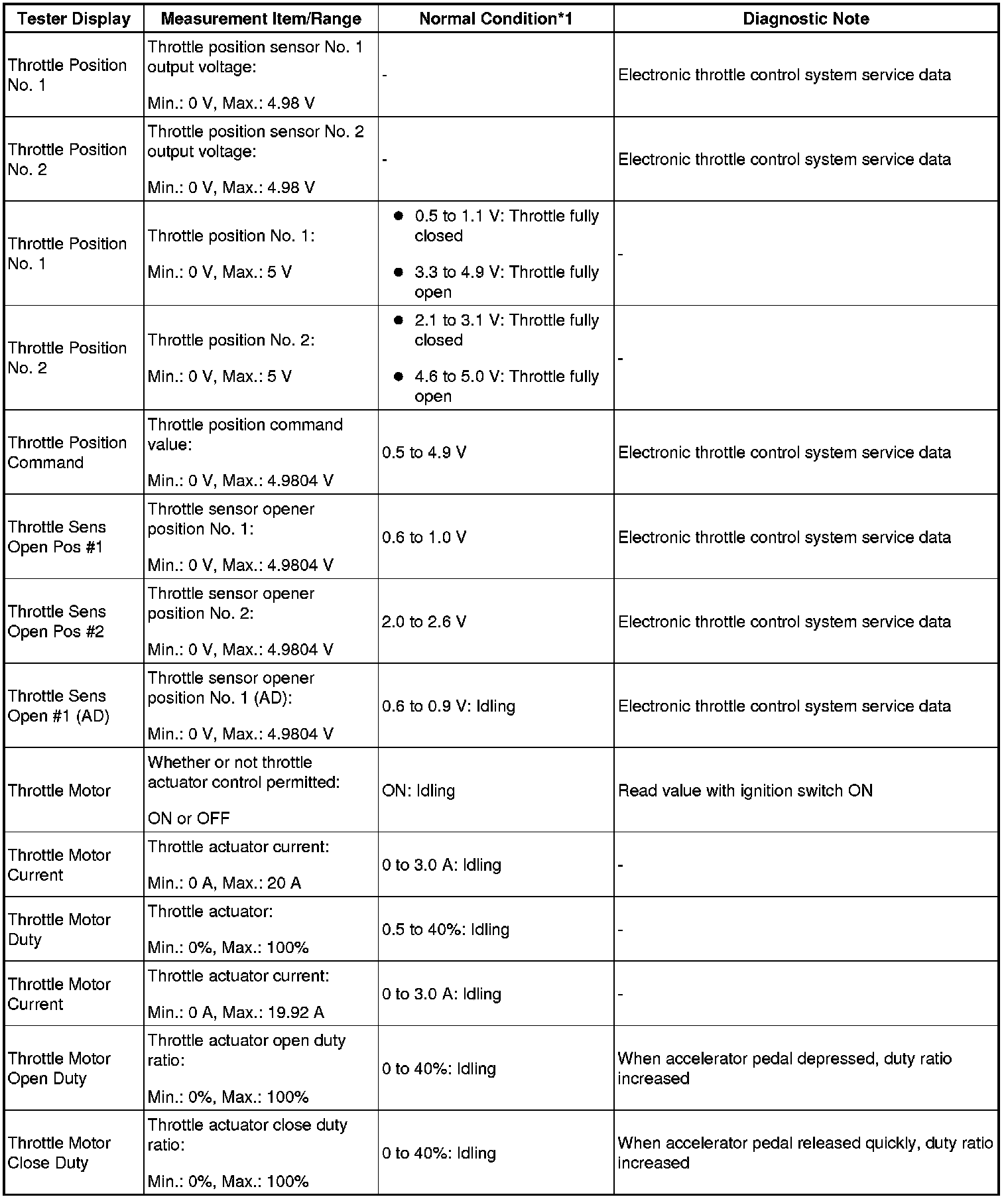 - *1: If no idling conditions are specified, the shift lever should be in N or P, and the A/C switch and all accessory switches should be off.