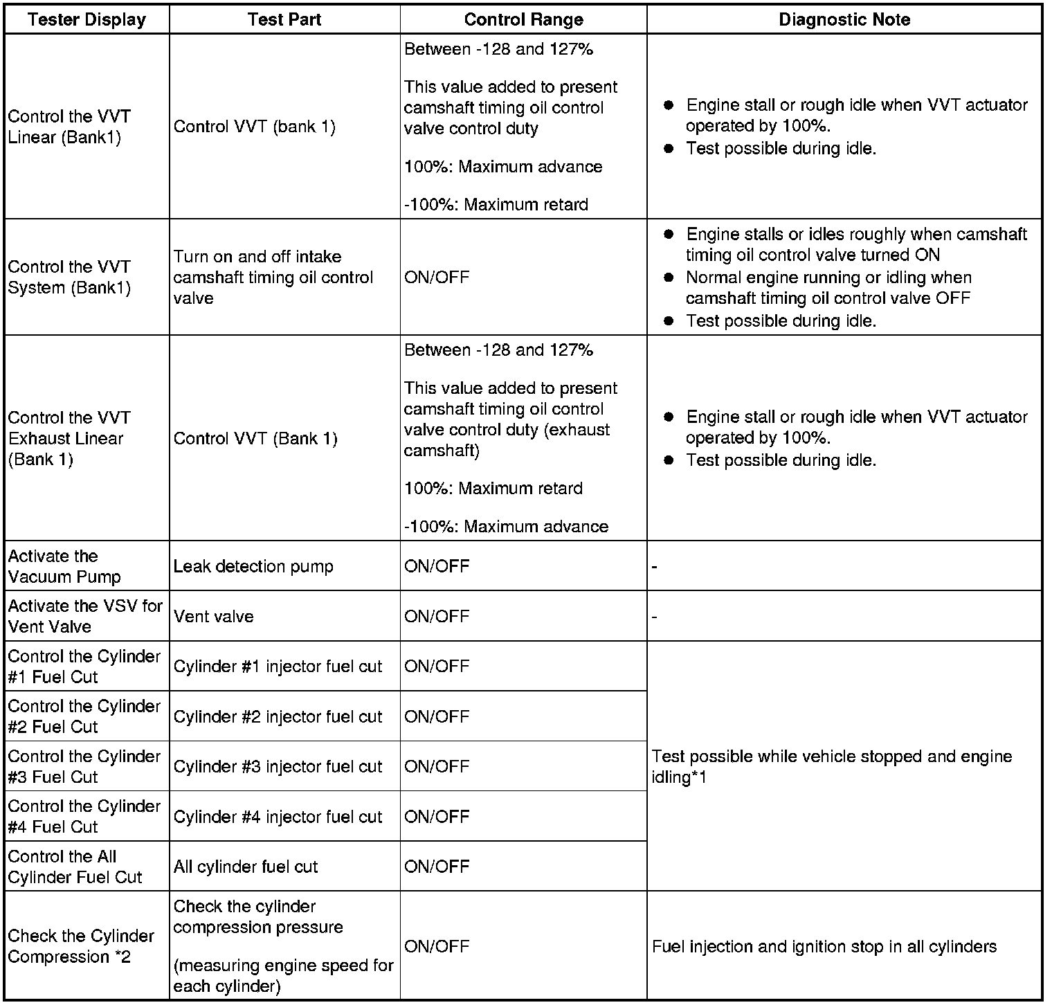 - *2: Values are only displayed when performing the Active Tests: Control the VVT Linear (Bank1). For other Active Tests, the value will be 0.