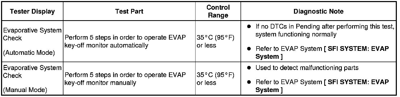 (e) Perform the System Check by referring to the table below.