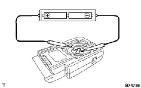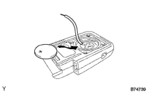 (1) Remove the battery from the electrical key transmitter that does not operate. Attach a lead wire (0.6 mm (0.0236 in.) in diameter or less including wire sheath) with tape or equivalent to the negative terminal Installation.