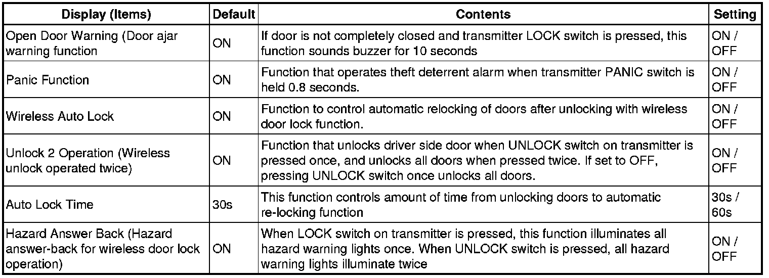 DOOR LOCK: WIRELESS DOOR LOCK CONTROL SYSTEM (w/o Smart Key System): CUSTOMIZE PARAMETERS