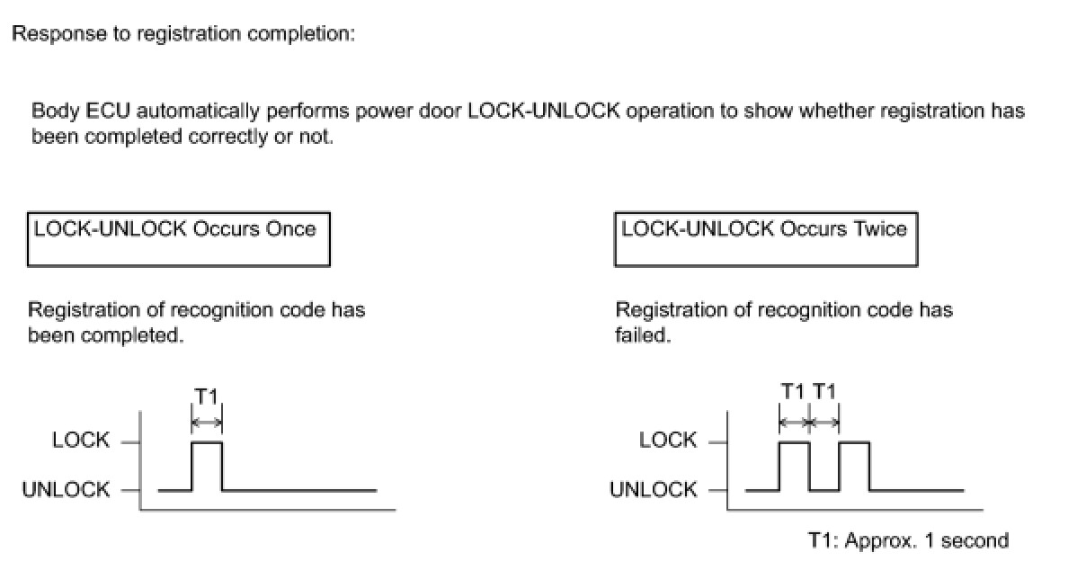 - If the LOCK-UNLOCK operation is occurs twice, the registration of recognition code has failed. Perform the registration procedures again from beginning.