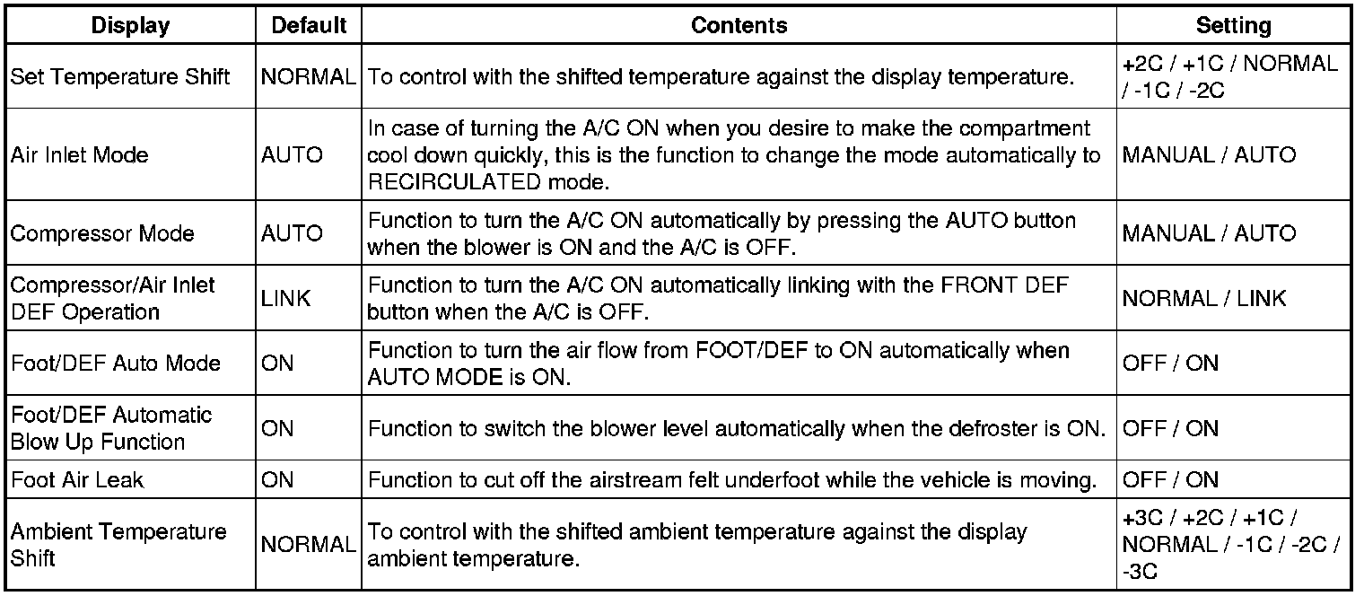 AIR CONDITIONING: AIR CONDITIONING SYSTEM: CUSTOMIZE PARAMETERS