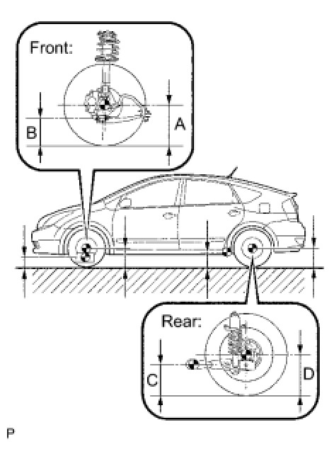 NOTE: Before inspecting the wheel alignment, adjust the vehicle height to the specified value.