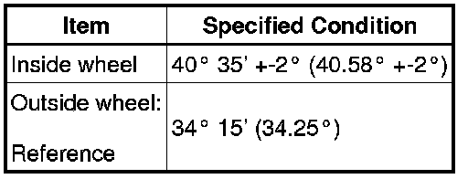 If the right and left inside wheel angles differ from the specified range, check the right and left rack end lengths.