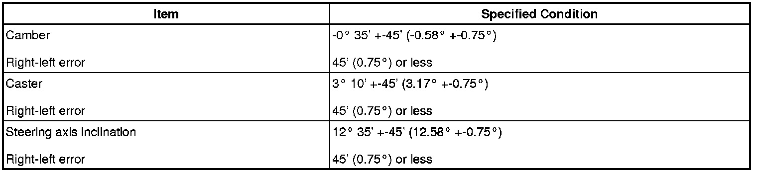 - The maximum tolerance of the right and left difference for the camber and caster is 45' or less.