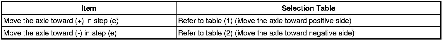 (j) Determine whether the direction of the required adjustment is toward the positive or negative side. (Ex: Refer to table (1) (Move the axle toward positive side))
