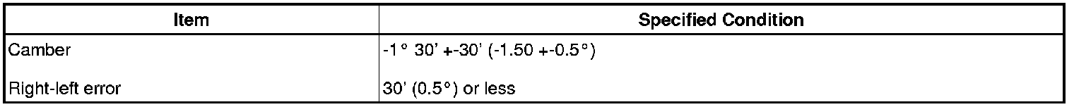 HINT: Camber is not adjustable. If the measurement is not within the specified range, inspect the suspension parts for damage and/or wear, and replace them if necessary.