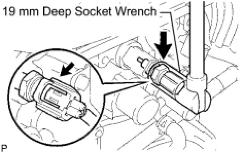 (a) Using a 19 mm deep socket wrench, install a new gasket and the sensor.