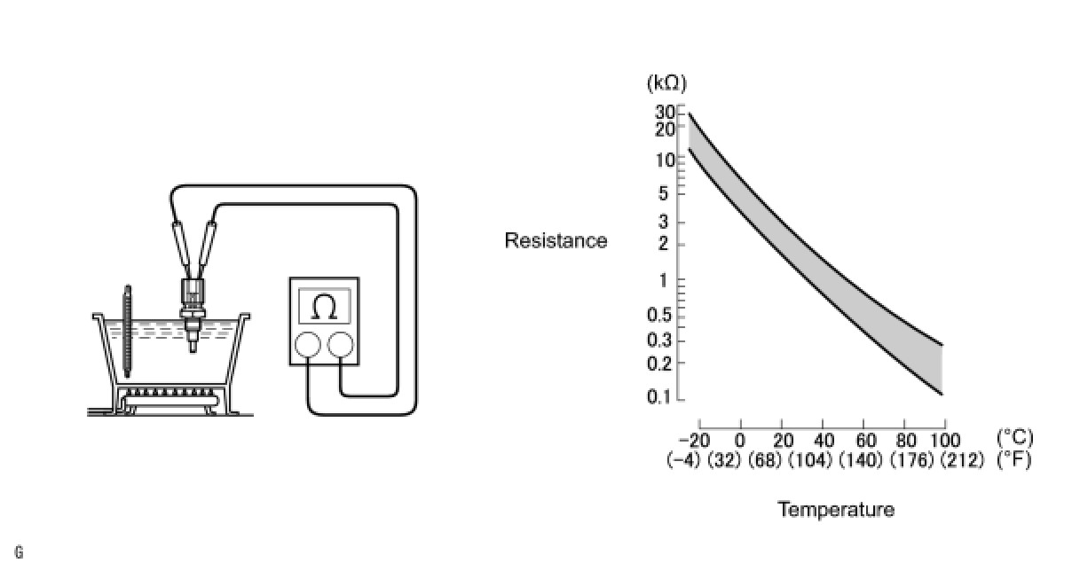 NOTE: If checking the sensor in water, be careful not to allow water to contact the terminals. After checking, dry the sensor.