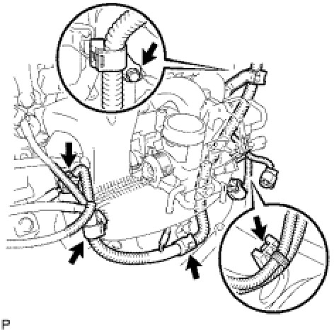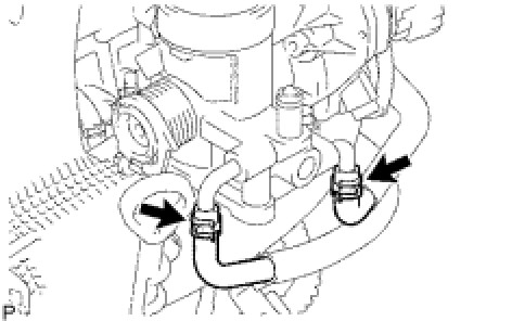 (e) Disconnect the No. 2 water by-pass hose.