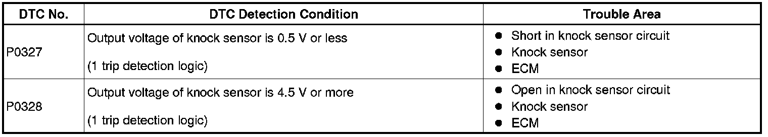HINT: When either of the DTCs P0327 and P0328 are set, the ECM enters fail-safe mode. During fail-safe mode, the power timing is delayed to its maximum retardation. Fail-safe mode continues until the power switch OFF.