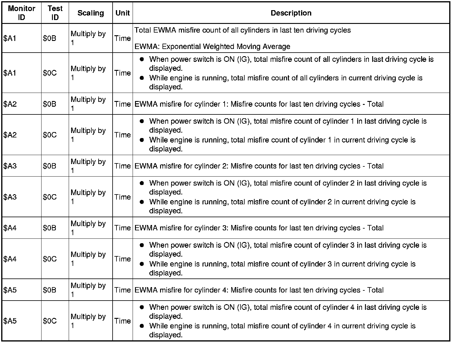 If you use a generic scan tool, multiply the test value by the scaling value listed below.
