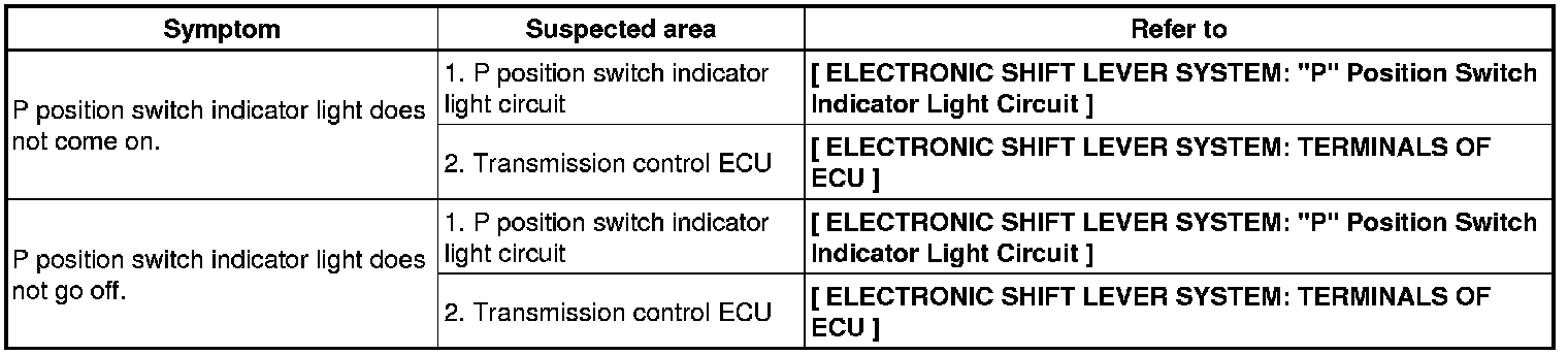 HYBRID TRANSMISSION / TRANSAXLE: ELECTRONIC SHIFT LEVER SYSTEM: PROBLEM SYMPTOMS TABLE