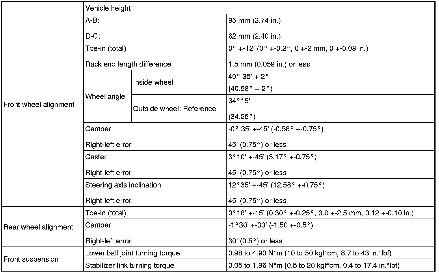 SERVICE SPECIFICATIONS: SUSPENSION: SERVICE DATA