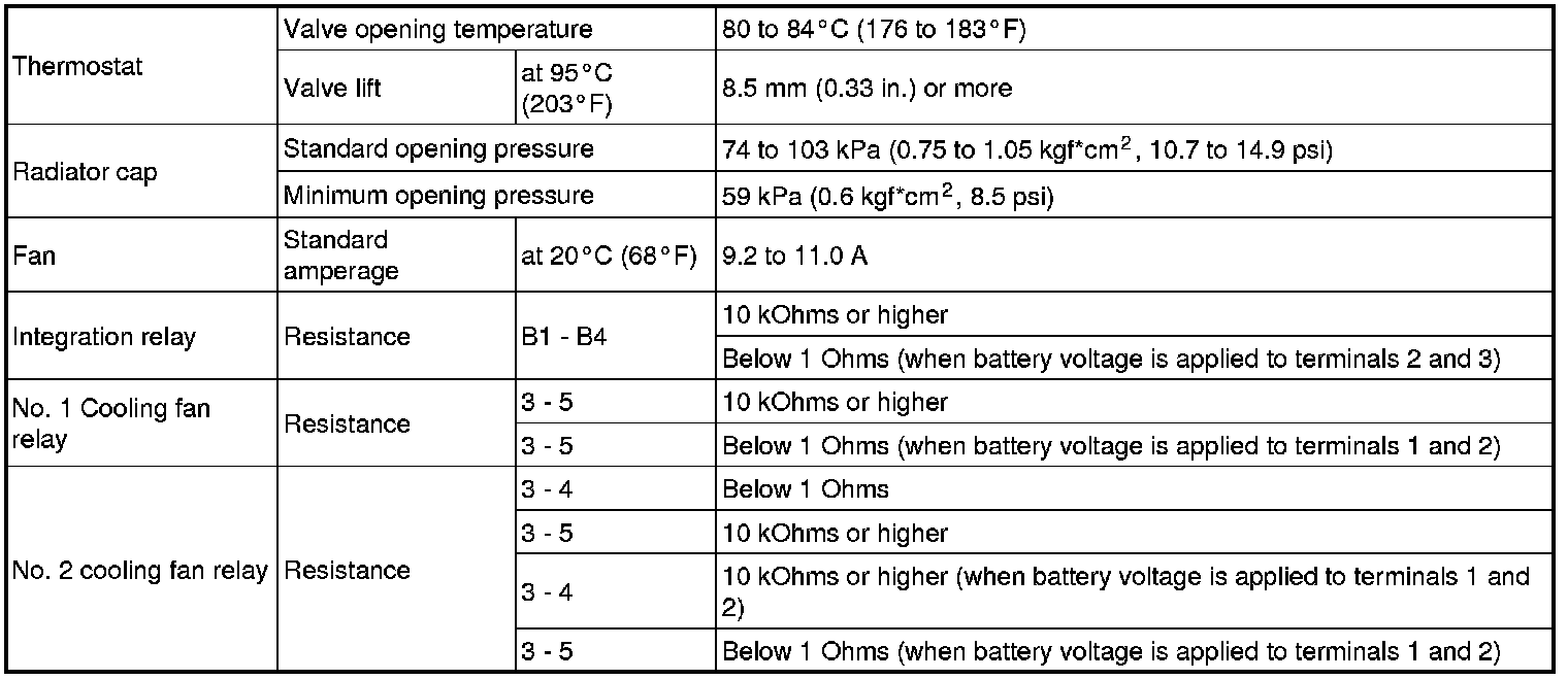SERVICE SPECIFICATIONS: 1NZ-FXE COOLING: SERVICE DATA