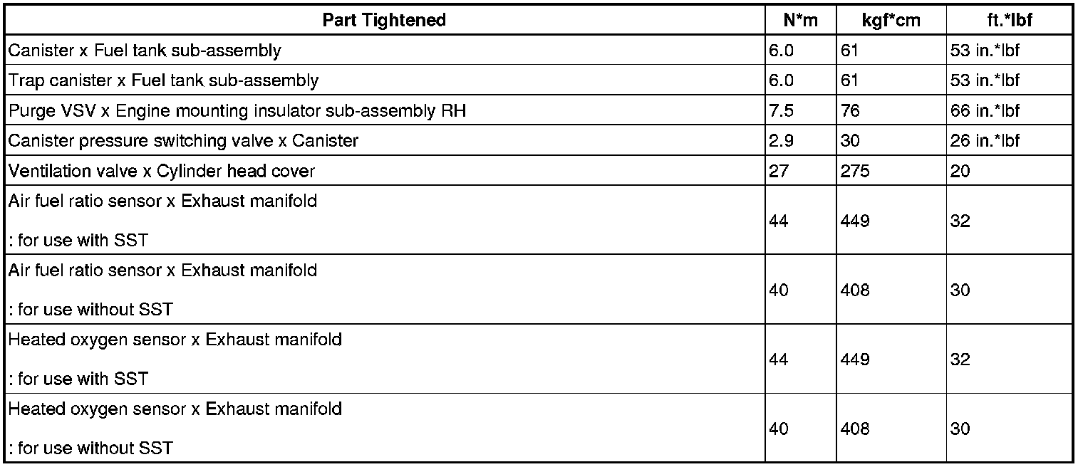 SERVICE SPECIFICATIONS: 1NZ-FXE EMISSION CONTROL: TORQUE SPECIFICATIONS
