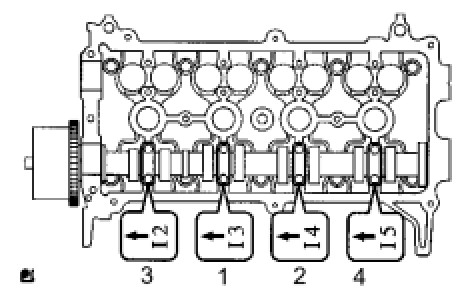 NOTE: Tighten each bolt uniformly, keeping the camshaft level.