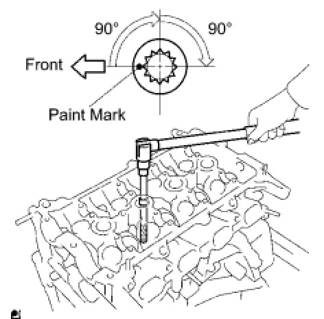Retighten the cylinder head bolts by an additional 90° and then another 90°, as shown in the illustration.