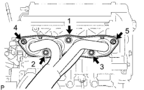 Tighten the 3 bolts and 2 nuts in the sequence shown in the illustration.