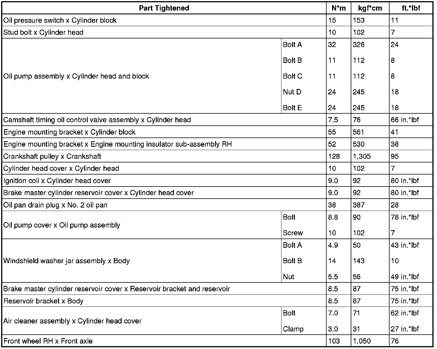 SERVICE SPECIFICATIONS: 1NZ-FXE LUBRICATION: TORQUE SPECIFICATIONS