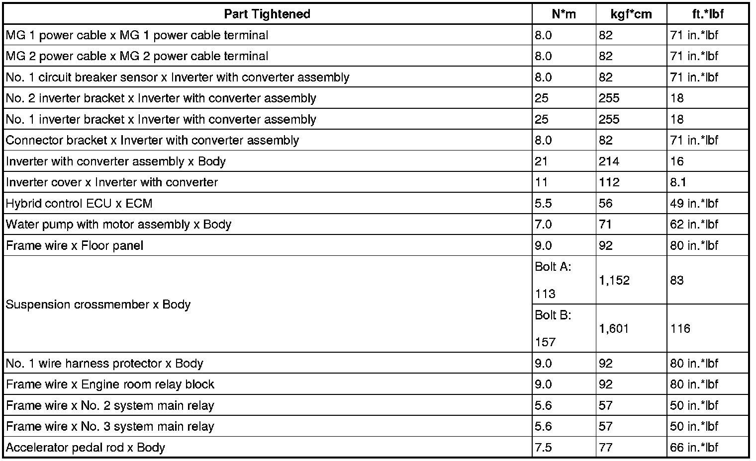 SERVICE SPECIFICATIONS: P112 HYBRID VEHICLE CONTROL: TORQUE SPECIFICATIONS