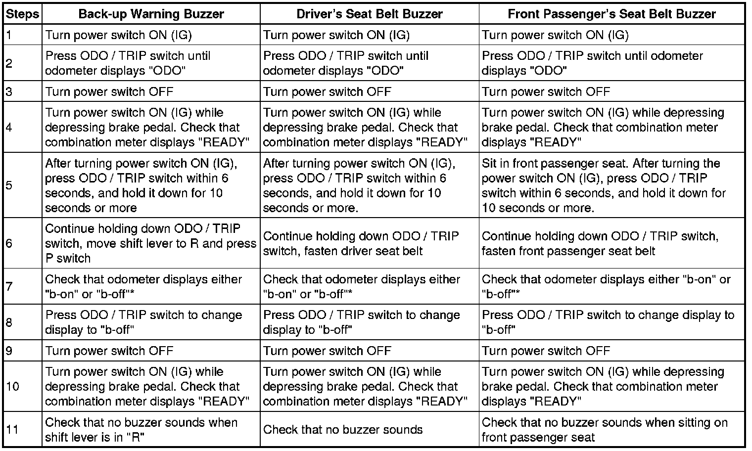 NOTE: Basically, these buzzers should be set on for safety driving. However, only if it is necessary to set the buzzer off for some reason, perform the following procedures.
