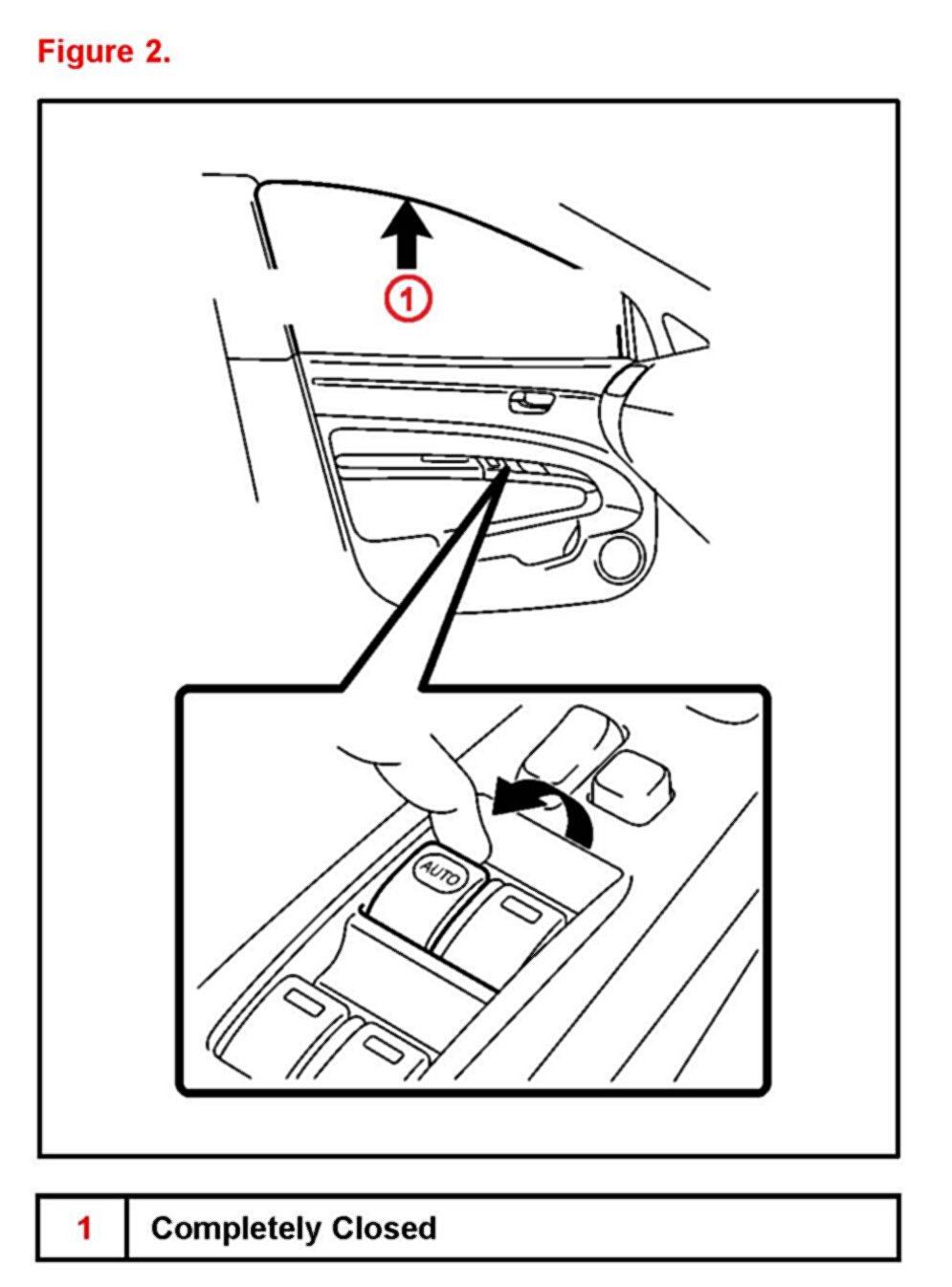 3. Pull "Up" the driver's door power window switch until the window closes. Continue holding the switch for approximately one second until the switch changes from blinking to a constant illumination.